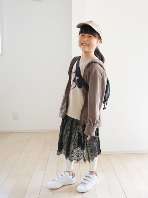 全体的に暗め・濃いめですがスタンスミスを合わせることにより清潔感が増し、より抜け感のあるコーディネートになっています。